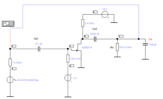 при С = 20 µF коэффициент усиления Кu= 2,69 полоса пропускания fв-fн = 283424