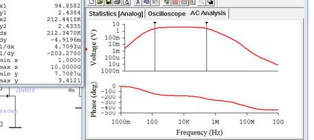 при С = 2200 pF коэффициент усиления Кu= 4,27 полоса пропускания fв-fн = 106352,79