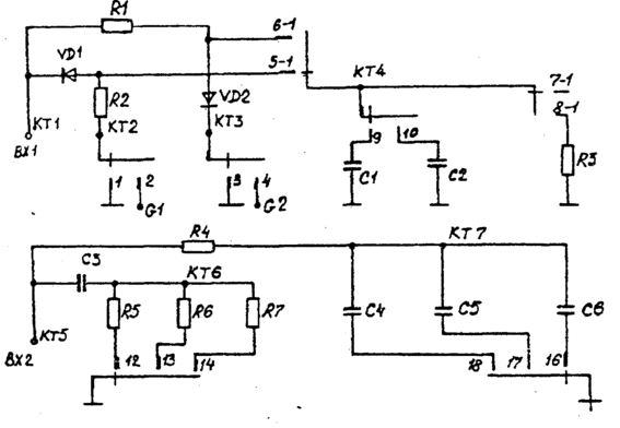 R1=R2=R3=5.1кОм; R4 = 9.1кОм; R5 = 1.1МОм; R6 = 68кОм; R7 = 20кОм; С1 = 6800пФ;