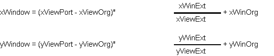 Переменные xWindow и yWindow обозначают, соответственно, логические координаты по оси X и Y. Физические координаты обозначаются как xViewport и yViewport. Таким образом, логические координаты (xWindow,yWindow) преобразуются в физические координаты (xViewport,yViewport).