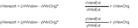 Переменные xViewExt, yViewExt, xWinExt и yWinExt (вернее, их отношения) задают масштаб, который используется в процессе преобразования координат. Этот масштаб зависит от установленного режима отображения. Приложения могут изменить его только в режимах MM_ISOTROPIC и MM_ANISOTROPIC , для остальных режимов отображения используются фиксированные значения.