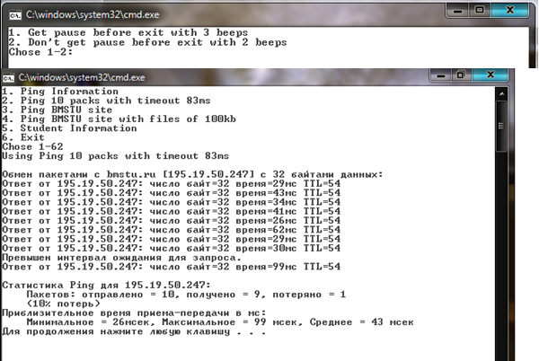 REM Пингуем сайт МГТУ 10ю пакетами с таймаутом 83 мс