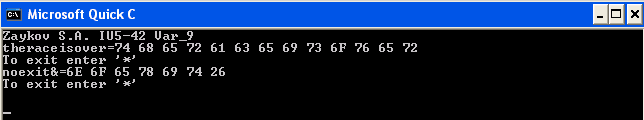 6 0010 5A 61 79 6B 6F 76 20+ FIO DB "Zaykov S.A. IU5-42 Var_9$"