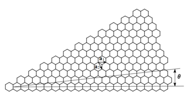 Как было сказано ранее, рассмотрим строение неуглеродных нанотрубок на основе углеродных. Идеальные углеродные нанотрубки имеют форму цилиндров, стенки которых образованы гексагонами (правильными шестиугольниками), с атомами углерода в вершинах. Наглядно процедуру формирования нанотубулена можно представить, как свертывание «ленты» из атомов углерода, вырезанной из монослоя графита (графеновой сетки). «Разрезание» слоя графита можно осуществлять разными способами: вдоль линий, перпендикулярных или проходящих по связям С—С, или под определенным углом к ним, так называемым хиральным углом θ (рис.1).