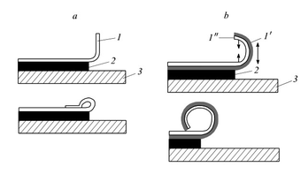 бщий способ (а). Тонкую пленку 1 наносят на двухслойную подложку 2-3, верхний слой которой может быть удален селективным травлением. После травления край пленки отделяют от подложки, загибают и накладывают поверх пленки. Тубулярная структура формируется в области сгиба (см. рис. 6).Таким образом были получены, например, кремний-германиевые нанотрубки длиной до 12 мкм и диаметром 230 нм. Толщина одного слоя составляла 16 нм и определялась условиями нанесения пленки.