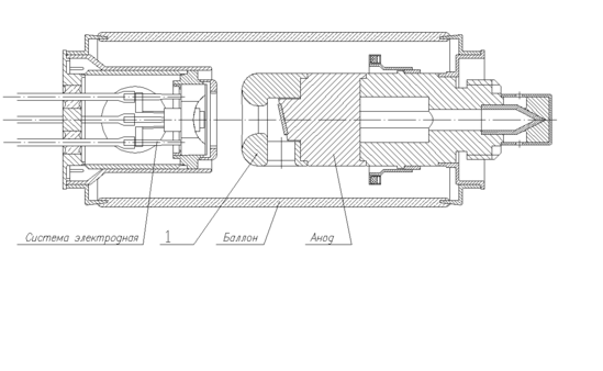 1 – массивный медный чехол на аноде для уменьшения интенсивности неиспользованного рентгеновского излучения