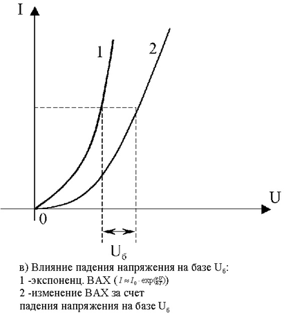 сравнимо с сопротивлением p-n перехода. В этом случае необходимо учитывать падение напряжения на базе: