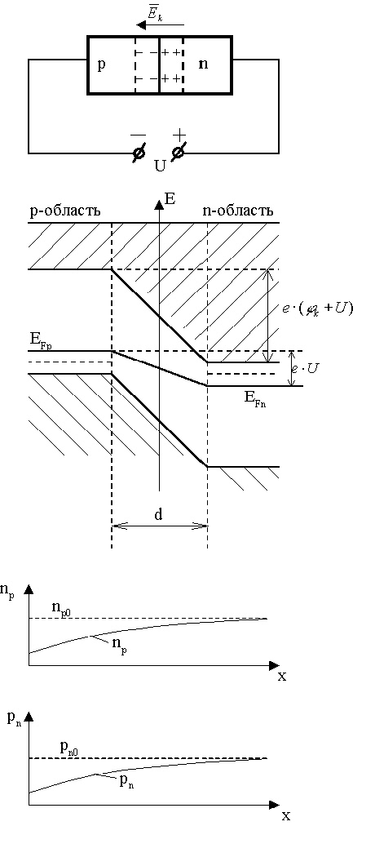 , при котором начинается инжекция неосновных носителей заряда. Наряду с диффузионным током в p-n переходе возникает также ток рекомбинации: