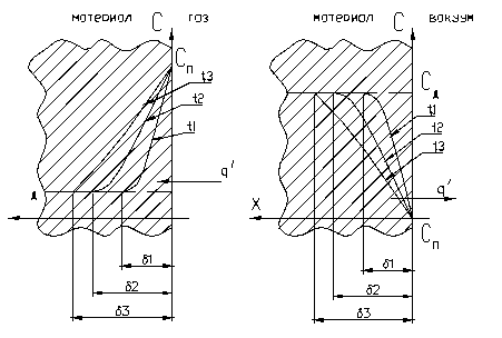 где Сатм - объемная концентрация газа в материале у поверхности, соприкасающейся с атмосферой;