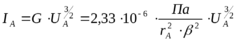 Па – эффективная площадь поверхности анода (та часть поверхности анода, куда попадают электроны); XA – расстояние от катода до анода (IA – [A], UA –[B], Па – [см2], XA –[см]).