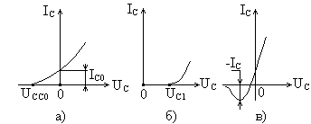 а) Кривая сдвинута влево. Ucco - напряжение запирания в сеточной цепи лампы; Ico - начальный сеточный ток при Uc =0. Этот эффект можно объяснить тем, что наиболее быстрые эмитирующие электроны преодолевают небольшой потенциальный барьер при Uc < 0.