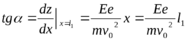 Электрон, двигаясь по параболе, к моменту выхода из пластин отклоняется на величину z1 и далее движется по касательной к экрану, отклоняясь на величину z2.
