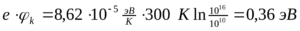 . Таким образом, высота потенциального барьера p-n-перехода без внешнего напряжения равна