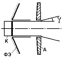 Формы катода (К), фокусирующего электрода (ФЭ) и анода (А) (рис. 1, 2);