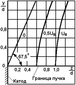 Угол расхождения пучка на выходе пушки (рис. 2).