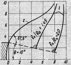 | Рис. 1. Эквипотенциальные поверхности вблизи конического пучка | Рис. 2. Функция (-)2 для сферического диода |