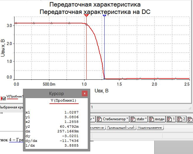 Ниже представлена схема для снятия передаточной характеристики и график Uвых = f1(Uвх).