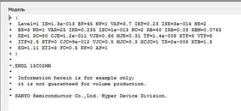 Настройки транзистора для данной лабораторной работы имеют вид, представленный на рисунке 1.