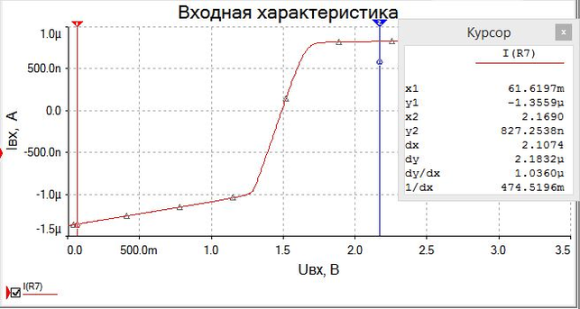 Рисунок 6 Графики входной характеристики (верхний для пороговых значений)