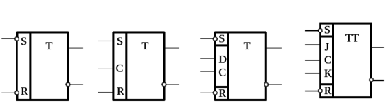 Примеры условного обозначения триггеров на функциональных схемах в соответствии с ГОСТ 2.743-91 (ЕСКД) показаны на рис.1.