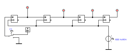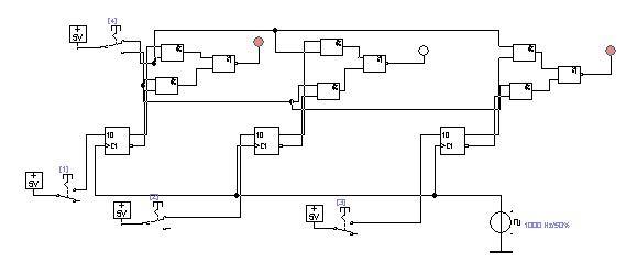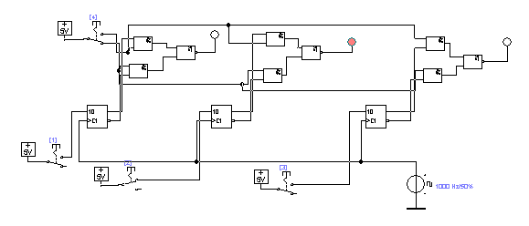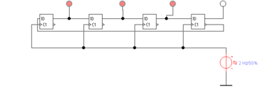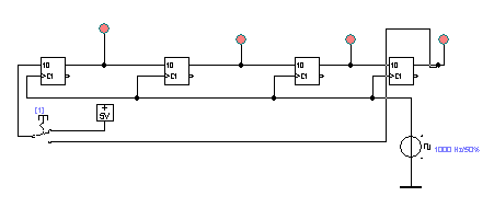При закрытом ключе 2 имеем регистр со сдвигом вправо (источником сигнала является ключ 1, синхронизирующий сигнал даёт источник импульсного сигнала):