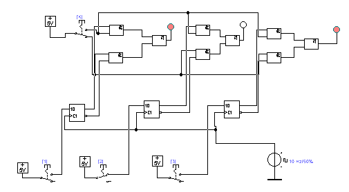 Собрать схему реверсивного сдвигающего регистра. Организовать управление направлением сдвига с помощью