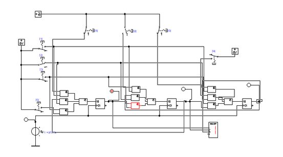 6.1.4 Инверсный выход триггера подключить к входу нижнего логического элемента логического элемента "И". Проделать эту процедуру с каждым триггером и соответствующим соединением.