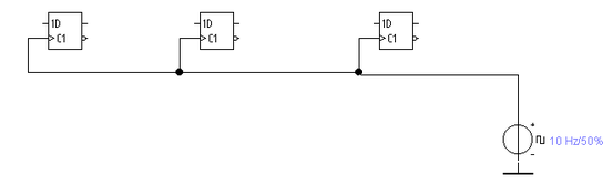 6.1.2 К входу С1 каждого из трёх D-триггеров подключим источник