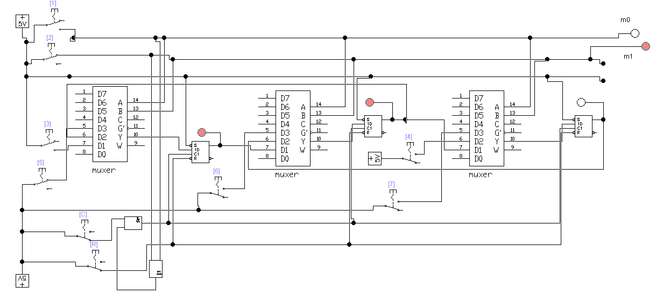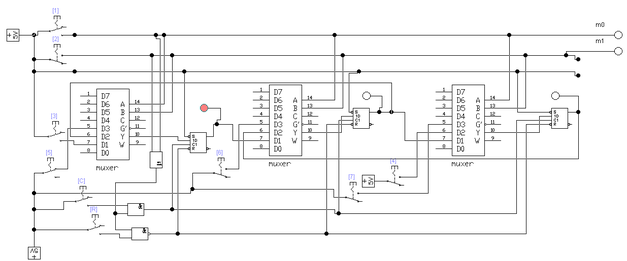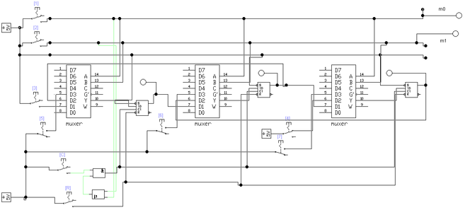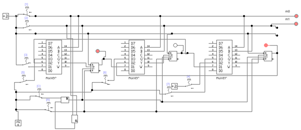 Ключ 3 - отвечает за адрес, то есть при замкнутом ключе 3 - сдвиг вправо, при разомкнутом сдвиг влево, ключ 2 -подача синхроимпульса, ключ 1 и 4 соответственно занесение цифр в правый и левый режим сдвига.