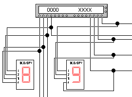 На выходах F0....F3 формируется результат операции АЛУ. Для отображения результата к выходам F0....F3 присоединяется алфавитно-цифровой индикатор.