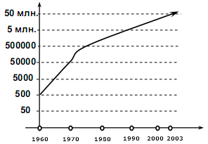 Рис. 1. Рост числа применений ЭВМ в задачах управления