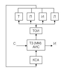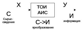 Из нее видно, что АИС получает в качестве сырья сведения, а после прохождения технологии обработки получают конечный продукт – информацию.