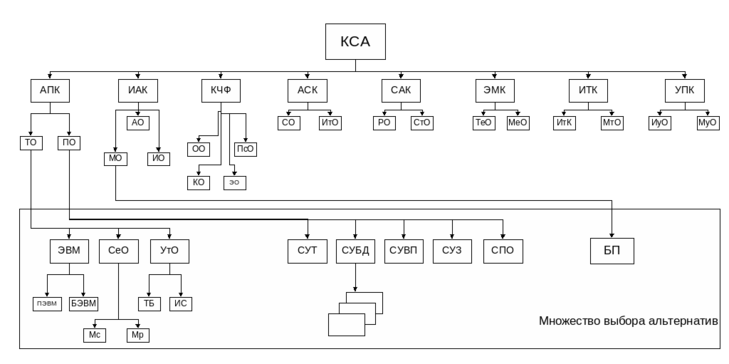 Вопрос №15: Декомпозиция КСА (комплексы, обеспечения, устройства (добавить собственное)). Структурный граф АИС. Множество альтернатив выбора.