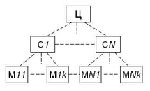 Структура такого типа применяется в том случае, когда на верхнем уровне сосредоточено большое количество сведений, и для разгрузки сведения распределяются по периферии, что позволяет обработать больше сведений
