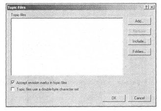 Для того чтобы добавить в проект файл справочной информации, нужно щелкнуть на кнопке Files и в открывшемся диалоговом окне Topic Files — кнопку Add (рис. 10). В результате откроется стандартное окно Открытие файла, используя которое следует выбрать нужный RTF-файл. В результате этих действий в окне проекта появится раздел [FILES], в котором будет указано имя файла справочной информации. Если справочная информация распределена по нескольким файлам, то операцию добавления файла нужно повторить.