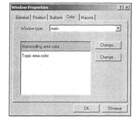 спользуя вкладку Color (рис.15), можно задать цвет фона области заголовка раздела справки (Nonscrolling area color) и области текста справки (Topic area color). Для этого надо нажать соответствующую кнопку Change и в стандартном окне Цвет выбрать нужный цвет.