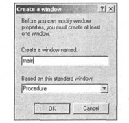 Чтобы задать характеристики главного окна справочной системы, надо в окне проекта нажать кнопку Windows и в поле Create a window named открывшегося окна Create a window (рис. 11), ввести слово main.