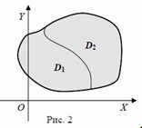 (б) Аддитивность. Если область D есть объединение областей D1 и D2, пересекающихся только по своей обшей границе (см. Рис. 2). то