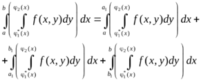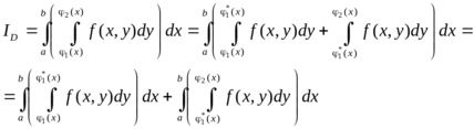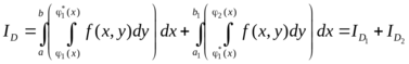 Если область интегрирования не принадлежит ни к одному из разобранных выше видов, то ее стараются разбить на части, каждая из которых относится к одному из этих двух видов.