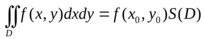 Свойство 4 (теорема о среднем). Двукратный интеграл ID от непрерывной функции f(х, у) по области D с площадью S равен произведению площади S на значение функции в некоторой точке Р области D, т. е.