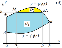 2) кривой A1M1M2В, уравнение которой условно запишем в форме