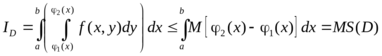 Свойство 3 (оценка двукратного интеграла). Пусть m и М ‑ наименьшее и наибольшее значения функции f(х, у) в области D. Тогда имеет место соотношение