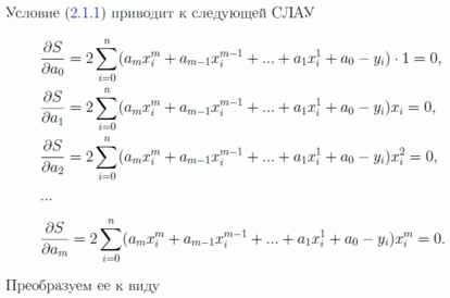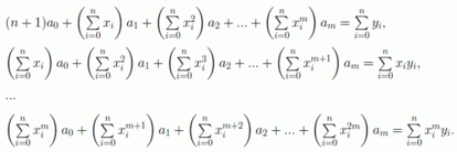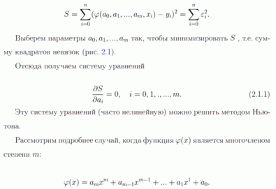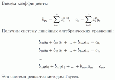 Отступление. В лабораторных задачах точки (xi, yi) заданы как значения известных функций в узлах лишь для облегчения задания таких наборов точек. К реальным задачам, в которых применяется МНК это отношения не имеет.