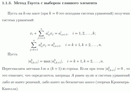 Отступление. В среде MATLAB такую систему можно решить одной командой (только заранее нужно определить значения переменных A и b):