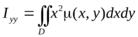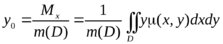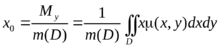 (в) Координаты центра масс плоской C(x0, y0) материальной пластинки. Координаты центра масс плоской материальной пластинки D . имеющей переменную плотность μ(x, y) находятся по формулам: