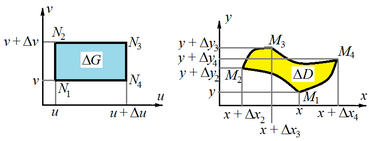 , взаимно однозначно, непрерывно дифференцируемо и отображает область
