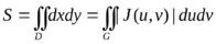 , причем якобиан J(u, v) этого отображения в G* отличен от нуля. Тогда площадь S квадрируемой замкнутой области
