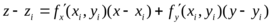 , возьмем точку Pi(xi, yi). Точке Pi, будет соответствовать на поверхности точка Mi(xi, yi, f(xi, yi)). Через точку Mi, проведем касательную плоскость к поверхности. Уравнение ее имеет вид