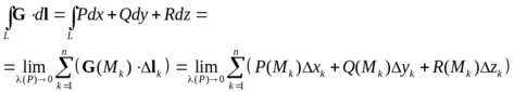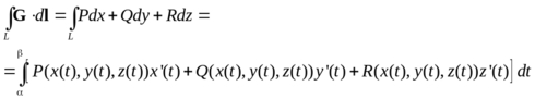 Пусть дан путь, т.е. ориентированная линия L с концами точках А и В (т.е. линия, на которой указано направление, например, от А к В), и векторное поле G(x, y, z) = P(x, y, z)i + Q(x, y, z)j + R(x, y, z)k.