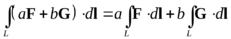 и векторных полей F и G (интегрируемых вдоль пути L) справедливо равенство: